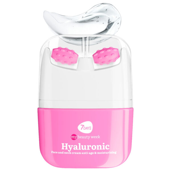 Crema facial 7DAYS MY BEAUTY WEEK Hyaluronic 40 ml + masajeador 3D para una hidratación intensiva, rejuvenecimiento y fortalecimiento de la piel. Crema facial hidratante de doble acción con Ácido Hialurónico: hidratación 24 horas + masaje facial. El Masajeador 3D FACE FIT proporciona un efecto lifting, reduce la hinchazón, suaviza las arrugas y esculpe un contorno facial firme y definido.