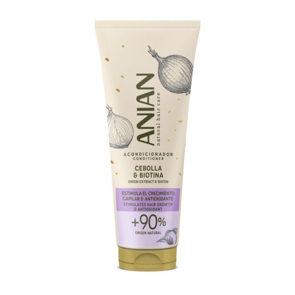 El acondicionador Anian de cebolla y biotina facilita el peinado y fortalece la estructura del cabello.
