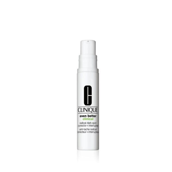 – El sérum para manchas oscuras de Clinique contiene nuestra molécula iluminadora patentada y vitamina C para lograr un tono de piel más uniforme, incluidas las marcas de pigmentación causadas por el acné. – – Además, mejora el aspecto de la hiperpigmentación, como las manchas oscuras existentes, e interrumpe también la aparición de manchas oscuras futuras.