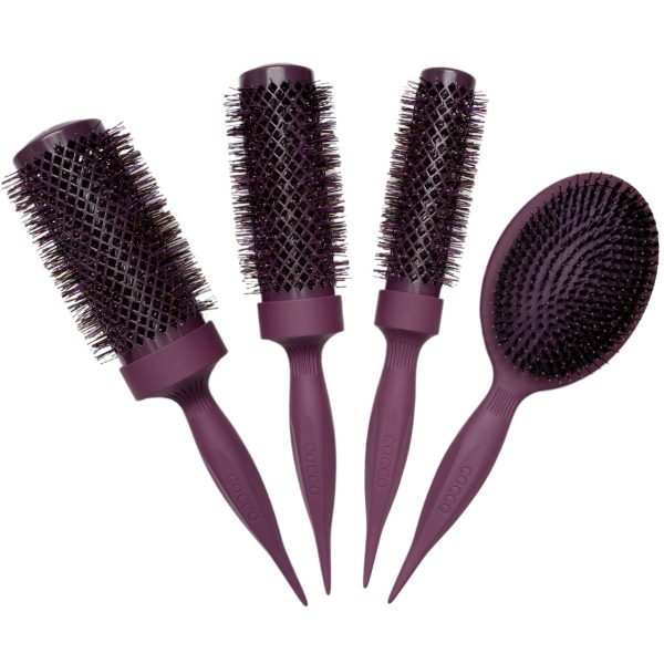 La colección de cepillos Cocco Aura es una línea premium de cepillos redondos y cepillos planos de cerámica para rizar el cabello , diseñados meticulosamente en Corea e inspirados en la estética K-beauty . Estos cepillos incorporan la tecnología Tri-Lon , una fusión de materiales avanzados diseñados para mejorar la eficiencia del peinado y preservar la salud del cabello . El set de cepillos Aura incluye una variedad de cepillos redondos de 33 mm , 43 mm y 53 mm para satisfacer diversas necesidades de peinado, y un versátil cepillo plano diseñado para alisar, desenredar y pulir el cabello .