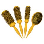 La colección de cepillos Cocco Aura es una línea premium de cepillos redondos y cepillos planos de cerámica para rizar el cabello , diseñados meticulosamente en Corea e inspirados en la estética K-beauty . Estos cepillos incorporan la tecnología Tri-Lon , una fusión de materiales avanzados diseñados para mejorar la eficiencia del peinado y preservar la salud del cabello . El set de cepillos Aura incluye una variedad de cepillos redondos de 33 mm , 43 mm y 53 mm para satisfacer diversas necesidades de peinado, y un versátil cepillo plano diseñado para alisar, desenredar y pulir el cabello .