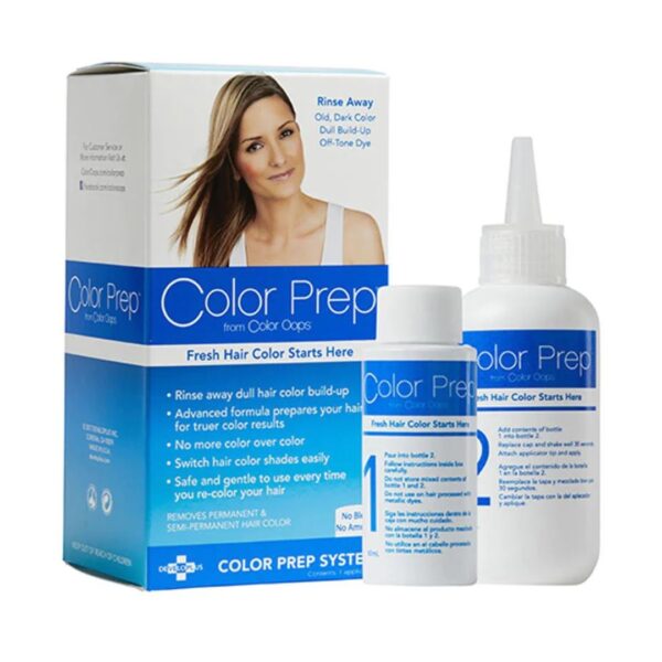 Color Oops Color Prep ayuda a eliminar la acumulación de color, productos y minerales, preparando el cabello para una transición de color más fácil. Esta fórmula única contiene una mezcla de ingredientes suaves pero clarificantes, como aloe vera y proteína de soya, para reparar el cabello dañado y promover un crecimiento saludable del cabello.
