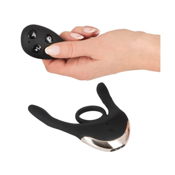 Vibrador para parejas multifunción de Couples Choice con anillo (pene) y brazos vibradores móviles. 3 motores, uno en el centro y uno en cada brazo, proporcionan 10 modos de vibración en 3 velocidades, controlables por separado con el control remoto inalámbrico, alcance de 10 metros, ¡perfecto para jugar en pareja! El sofisticado vibrador está hecho de suave material de silicona alrededor y proporciona una sensación muy agradable en la piel y el cuerpo cuando se juega y se abraza.