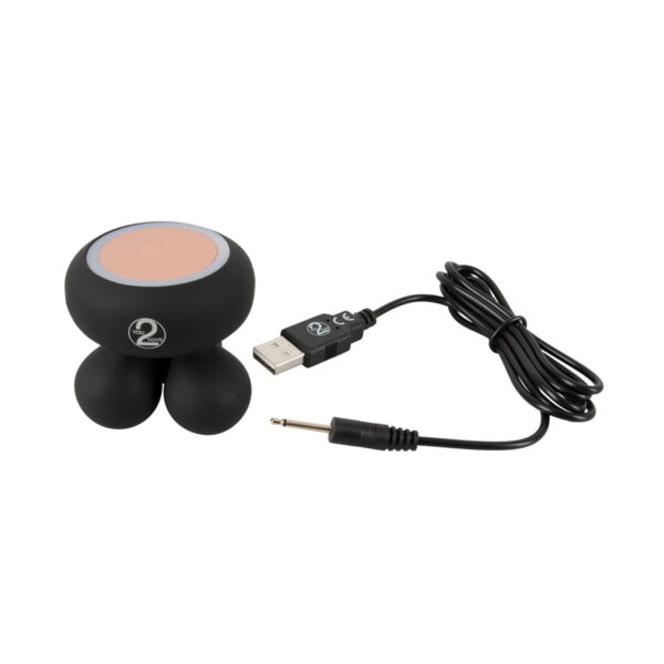 Recargable – Cable de carga USB incluido. 5,5 cm de largo, 5,4 cm de ancho. Ø: bola de 2,7 cm cada una, superficie de calentamiento de 3,4 cm. Peso 101g. Silicona, PU, ABS.