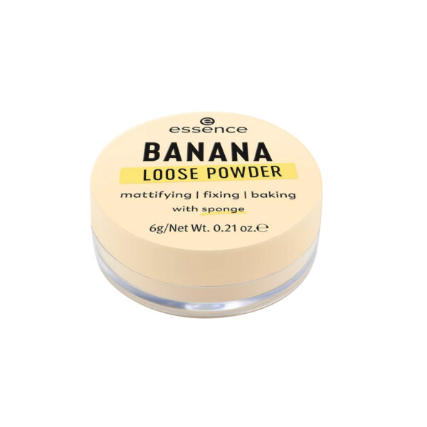 Con su polvo ultrafino en un suave tono amarillo, el POLVO SUELTO BANANA es perfecto para agregar resaltados mate sobre los pómulos, en la frente, el puente de la nariz o el arco de Cupido de los labios. También es adecuado para fijar el maquillaje en su lugar y para la técnica de «Concealer Baking». La textura ligera está formulada sin aceite mineral ni talco, para una sensación agradablemente ligera en la piel. El polvo suelto viene con una esponja, para que puedas refrescar tu aspecto siempre que lo necesites.