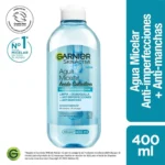 El Agua Micelar Express Aclara de Garnier: Desmaquilla, Limpia y Unifica el tono de la piel del rostro.