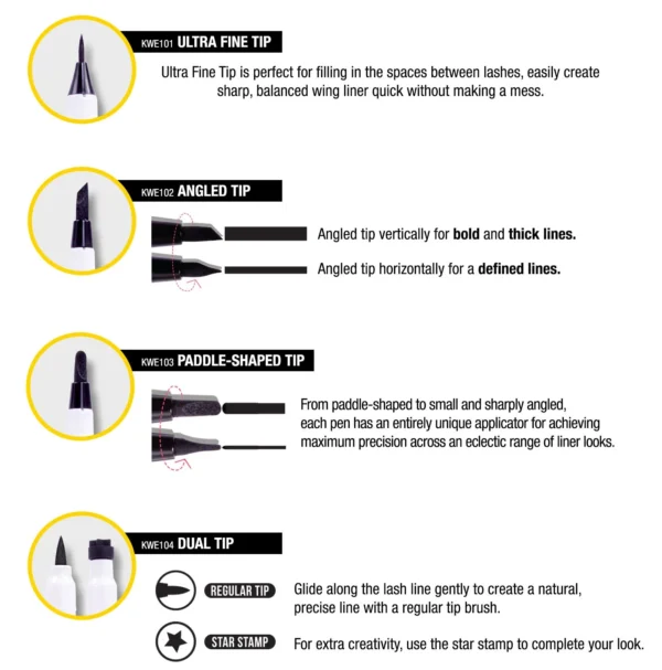 Crea fácilmente líneas gruesas o delgadas para un aspecto dramático. La fórmula de larga duración dura todo el día sin desvanecerse ni mancharse.