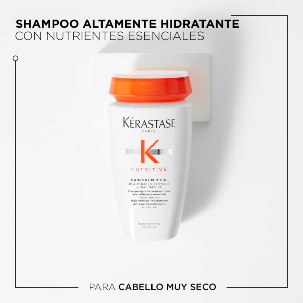 Shampoo extremadamente nutritivo para el cabello muy seco. Contiene polímeros antisequedad que aportan nutrición y mucha fuerza. Limpia en profundidad y restaura el cabello seco. Tiene una textura de gel cremosa que envuelve el cabello y el cuero cabelludo y limita así el picor del cuero cabelludo.