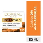 Crema humectante antiedad hidra-total 5 +35, hidrata por 24 horas, reduce las primeras arrugas, mejora elasticidad, suaviza y unifica el tono. 50 ml