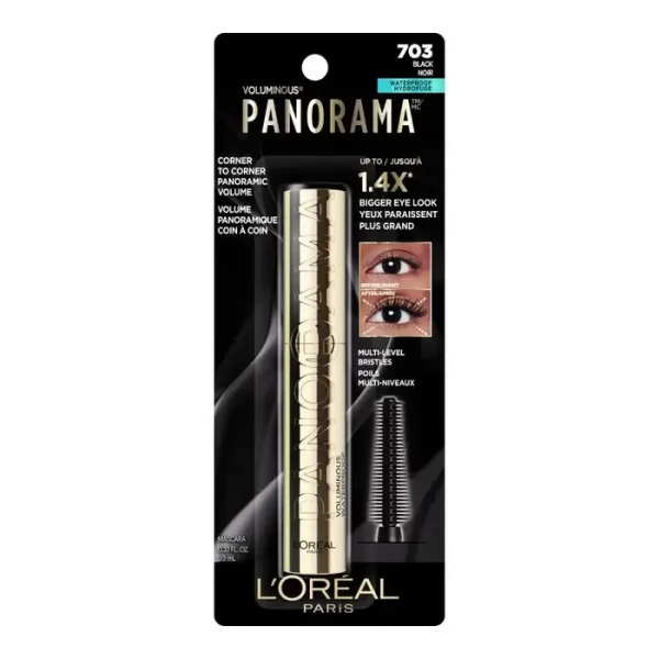 Máscara de pestañas voluminizadora de larga duración que brinda un aspecto de pestañas gruesas y en abanico,