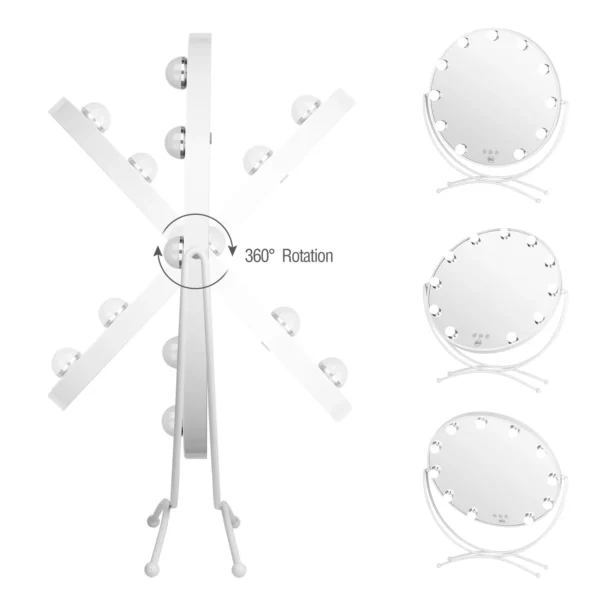 ¡Un giro redondo en nuestros populares espejos de tocador! Nuestros espejos de tocador redondos ofrecen los mismos 3 tonos con configuraciones regulables y un marco de hierro resistente. Las diferentes configuraciones de color y atenuación le permiten controlar su entorno de iluminación, ¡perfecto para iluminar su tocador (y obtener esa selfie perfecta)!