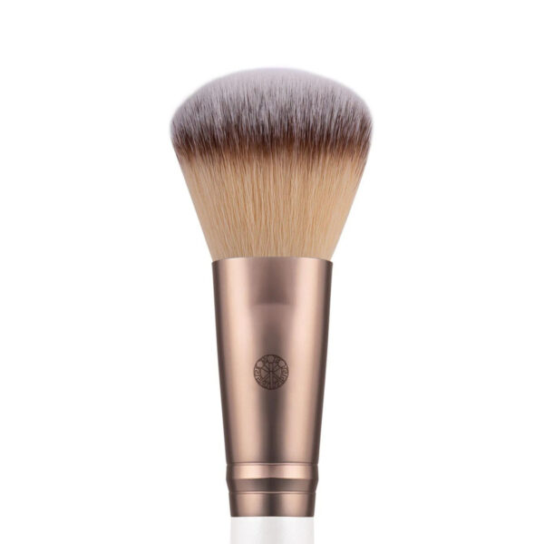 Sumérgete en el cautivador reino de la belleza impecable con nuestra versátil brocha para polvos. Realza tu apariencia y dale un brillo bronceado deslumbrante: un look que irradia frescura y un encanto radiante.