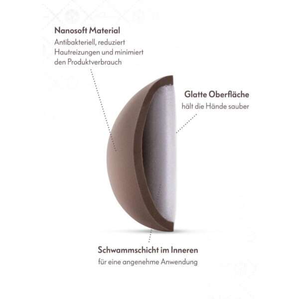 Experimente limpieza e higiene en cada aplicación: las manos quedan completamente limpias, ya que la esponja cosmética solo entra en contacto con el producto y el rostro. El material nanosoft de poros finos evita un alto consumo de producto y previene las impurezas de la piel gracias a sus propiedades antibacterianas.