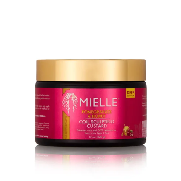 Mielle Pomegranate & Honey Coil Sculpting Custard es una custard para rizos formulada con granada y miel para definir y realzar los rizos y bobinas. Proporciona hidratación, suavidad, fijación suave y fortalecimiento del cabello, al tiempo que protege contra el daño causado por el calor y los elementos ambientales. Es una opción ideal para aquellos que buscan un producto de peinado natural para rizos y bobinas definidas y con aspecto saludable.