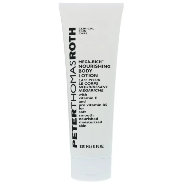 La loción corporal nutritiva Peter Thomas Roth Mega-Rich es una lujosa loción corporal que ayuda a nutrir e hidratar la piel seca. Está formulada con una mezcla de vitaminas C, E y pro-vitamina B5, así como con manteca de karité, aceite de jojoba y extracto de té verde. Estos ingredientes trabajan juntos para hidratar y proteger la piel, dejándola suave, tersa y con aspecto saludable. La fórmula ligera se absorbe rápidamente en la piel, sin dejar una sensación grasosa o pegajosa. Es adecuada para todo tipo de piel, incluyendo la piel sensible.