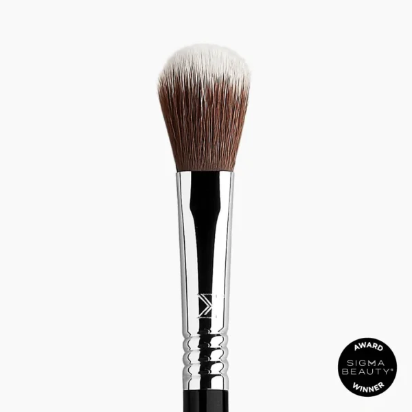 Consigue tus puntos culminantes con esta brocha de fibra Sigmax®, esponjosa pero firme, usando tus productos favoritos en crema, líquidos o en polvo para lograr un brillo preciso.