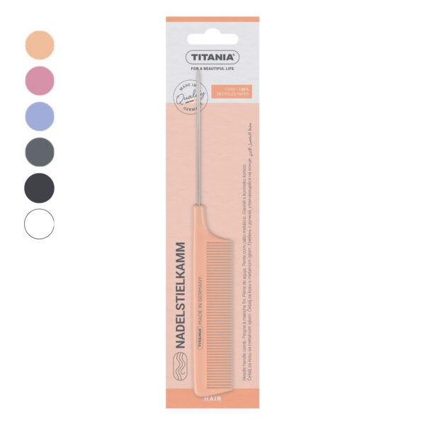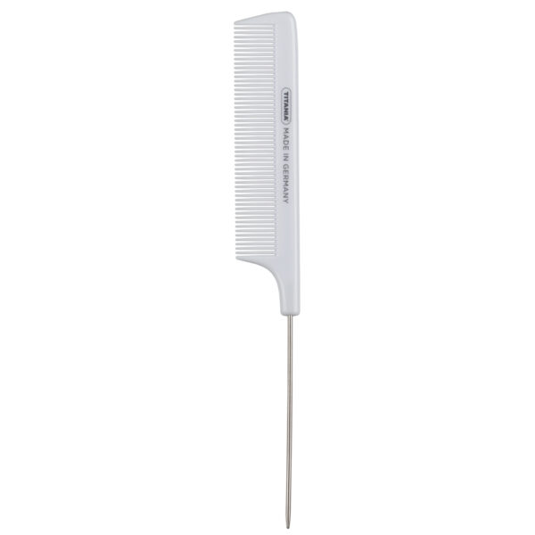 Peine con mango fino y puntiagudo, ideal para seccionar el cabello y realizar detalles precisos. Fabricado con materiales duraderos, facilita el peinado y es apto para todo tipo de cabello.