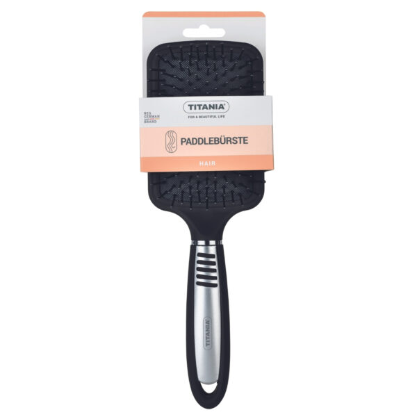 Cepillo plano con una base ancha, diseñado para desenredar y alisar el cabello de manera eficiente. Su forma de paleta permite un peinado rápido y suave, ideal para todo tipo de cabello. El diseño ergonómico y los materiales duraderos aseguran comodidad y resistencia.