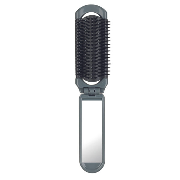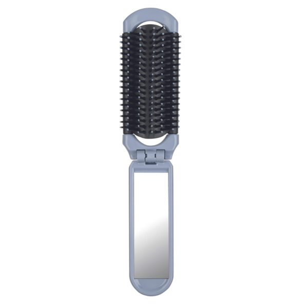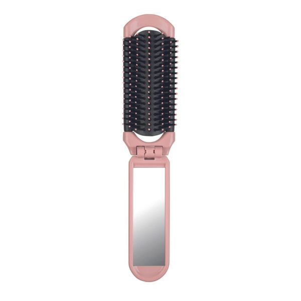 Cepillo de viaje compacto con un diseño plegable. Su tamaño portátil es ideal para llevar en el bolso o en viajes, y se despliega fácilmente para su uso. Ofrece cerdas que desenredan suavemente el cabello y un diseño práctico que protege las cerdas cuando está guardado.