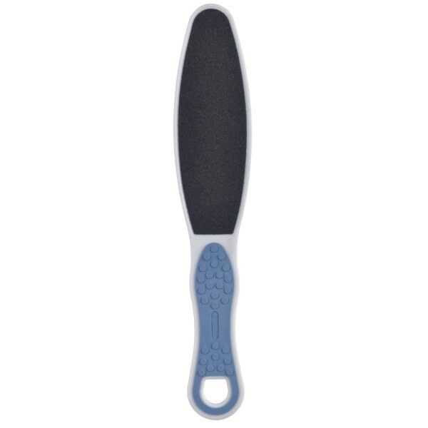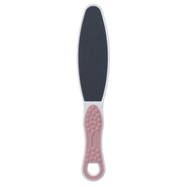 Lima para pies de doble cara con un diseño práctico. Tiene una cara rugosa para eliminar callosidades y durezas, y una cara más suave para pulir y alisar la piel. Su diseño ergonómico y duradero permite un uso cómodo y efectivo para mantener los pies suaves y bien cuidados. La versión «ST» puede indicar un acabado específico o características adicionales, como una superficie de acero inoxidable o una textura mejorada.