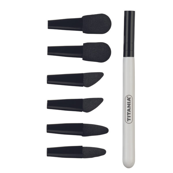 Conjunto de aplicadores para sombra de ojos. Incluye varios aplicadores con esponjas o pinceles, diseñados para aplicar y difuminar sombras de manera precisa. Ideal para lograr una aplicación uniforme y crear looks detallados, el set facilita la aplicación de productos cosméticos con control y precisión.
