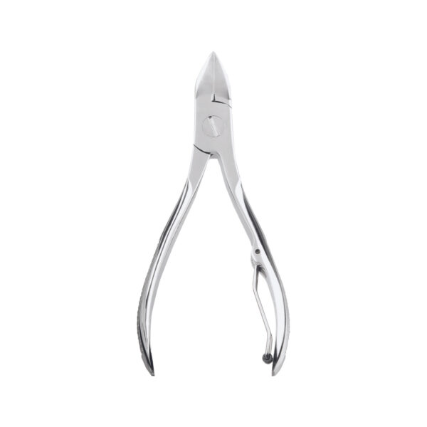Pinza para uñas de alta calidad, diseñada para cortar uñas gruesas y duras con precisión. Su construcción robusta y sus hojas afiladas permiten un corte limpio y eficiente, mientras que su diseño ergonómico ofrece un agarre cómodo y controlado. Ideal para el cuidado de las uñas en casa, proporciona un rendimiento duradero y fiable.