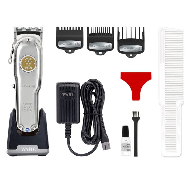 La Wahl Senior Cordless es conocida por su motor potente, cuchillas de corte precisas y construcción duradera. Está diseñada para barberos y estilistas profesionales que requieren una herramienta confiable para diversas tareas de corte y recorte de cabello. La característica inalámbrica permite una mayor flexibilidad y facilidad de uso, ya que no limita el movimiento ni requiere un enchufe de corriente. Por lo general, la cortadora viene con un conjunto de peines de diferentes longitudes, un cable de carga y otros accesorios.